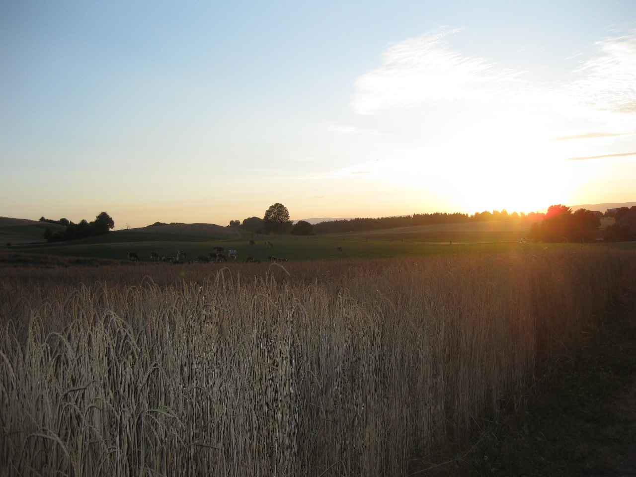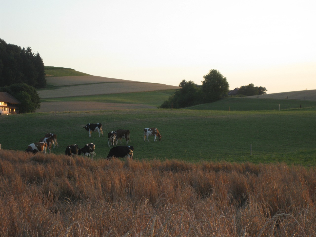 ein Kornfeld und Kühe in der Nähe vom Gsteighof-Quartier